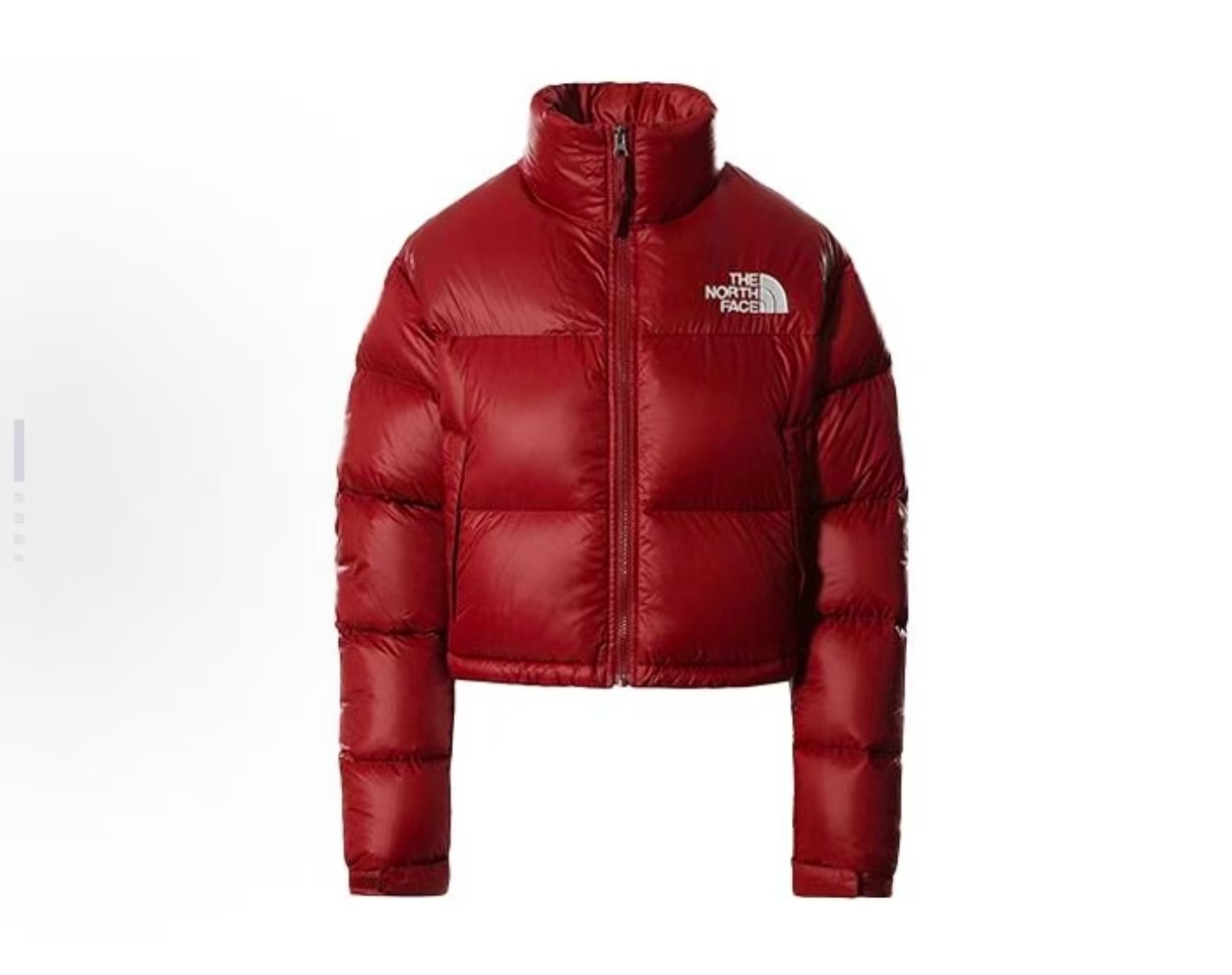 THE NORTH FACE Nuptse 로고 로고 프린트 쇼트 칼라 빵 패딩 여성 브릭스 레드