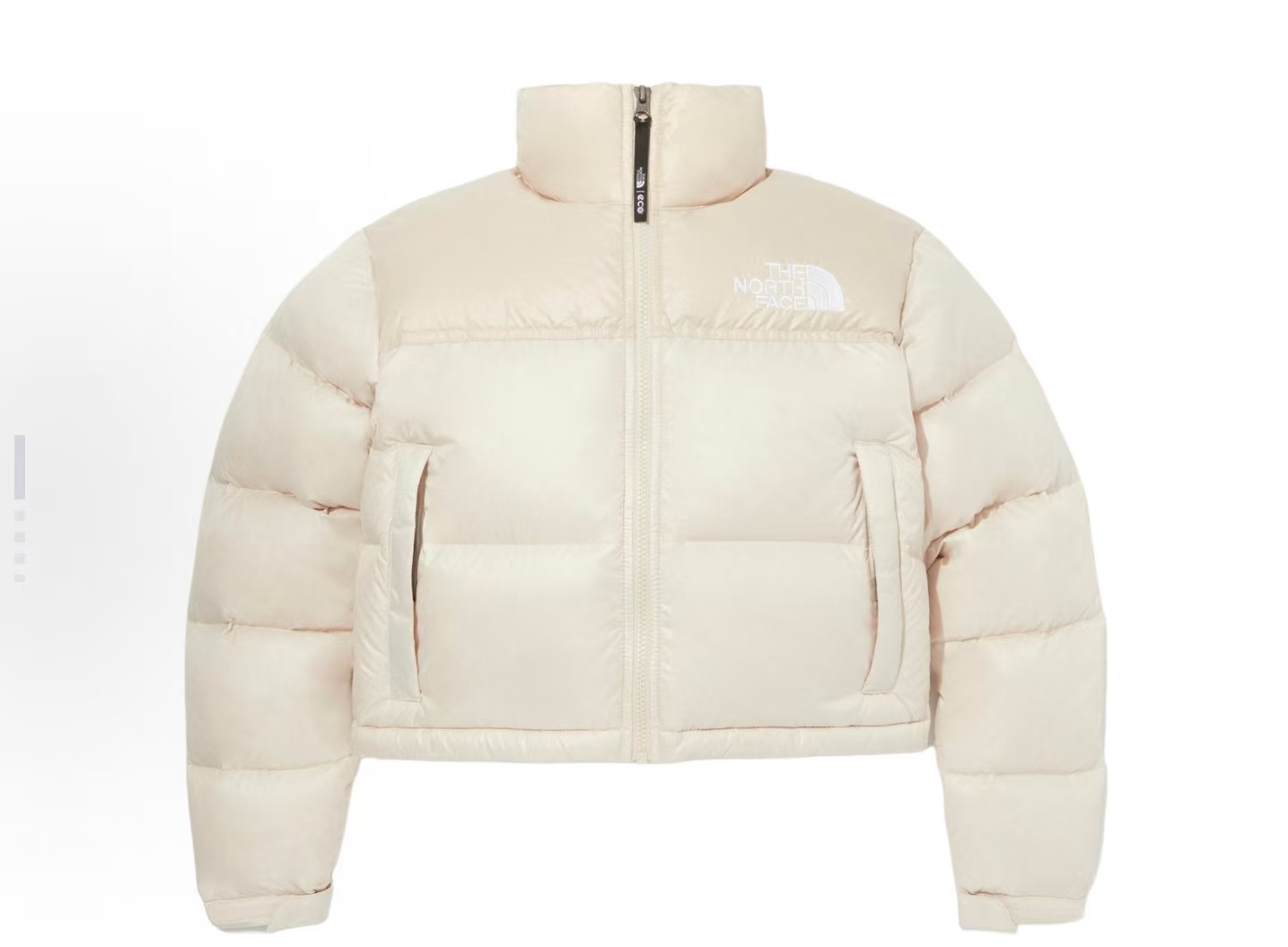 THE NORTH FACE Nuptse 접합 로고 알파벳 자수 칼라 쇼트 브레드 롱 슬리브 패딩 여성 아이보리