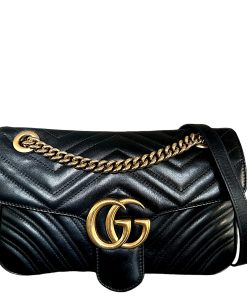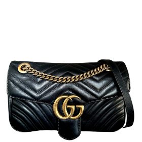 Gucci marmont small shoulder bag has a softly structured shape a a flap closure with double G hardware. Designed to be worn multiple ways, the chain strap slides to change between a shoulder and a top handle bag.